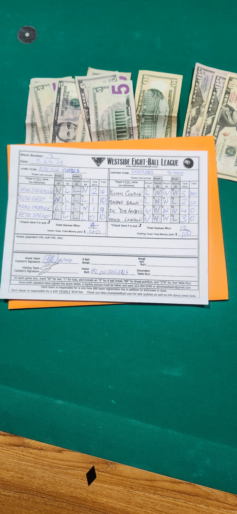 | Player | Rank | Won | Lost | 8B | TR | STR | HR | Dues Paid | BCA Fee |